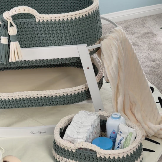 Complete your space with our coordinating Moses basket stand by Plum & Sparrow, along with a matching storage basket and diaper caddy (sold separately).